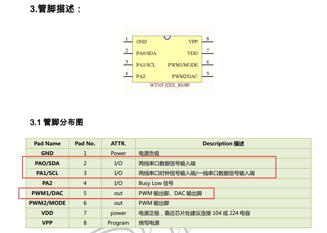 PA2: 忙碌线,当有语音播报的时候,该引脚为低电平。