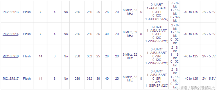 PIC单片机选型参考