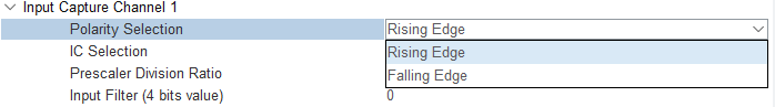 设定定时器的时基,此时基中的CNT寄存器的计数值将传递给CCR寄存器,是输入捕获的时间基准;设定输入捕获的捕获模式,上升沿捕获、下降沿捕获,若设定上升沿捕获,则捕获上升沿;若下降沿捕获,则捕获下降沿;捕获模式配置