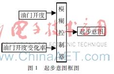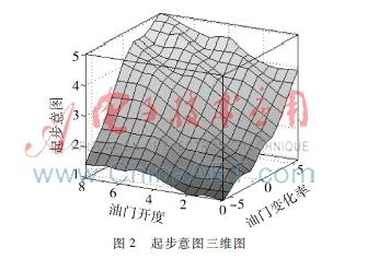 汽车在起步时,首先是驾驶员接触到外部环境信息,然后决定起步的快慢,最后控制油门踏板进行起步。因此驾驶员的起步意图通常是通过油门开度和油门变化率来判断的,油门开度大,油门开度变化率高,表明驾驶员急于起