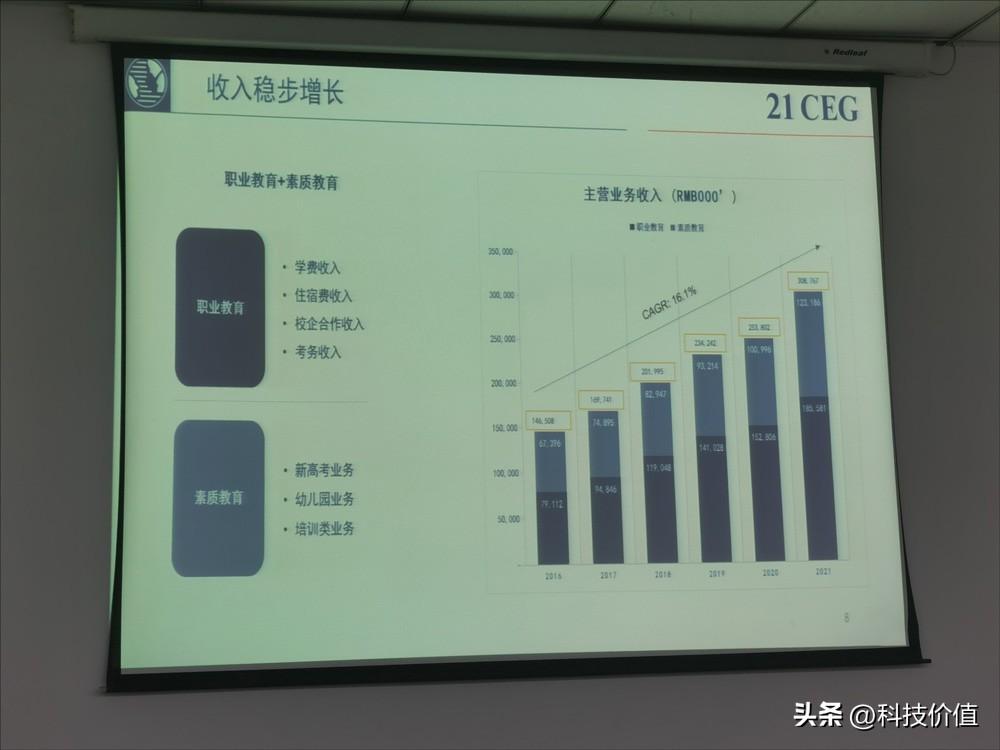从收入构成来看,21世纪教育主营业务收入主要来自两个方面,即职业教育(主要来自石家庄理工职业学院,包括学费收入、住宿费收入、校企合作和考务收入等)和素质教育。而去年利润下降的主要原因均来自素质教育(新高考业务、幼儿园业务等),在本人问到是否将素质教育继续作为后续重点业务时候,公司认为,未来,将把大量的资金、精力、资源放在职业教育业务,素质教育将尝试开展新高考业务的2B模式,即为公立高中进行入校培训,侧重于培优培训,将优质的教学师资及内容输送至各个高中,以达到资源互补的效果。目前,21世纪教育将这种业务模式拓展至全国14个省的38所学校,计划向全国范围进行拓展。