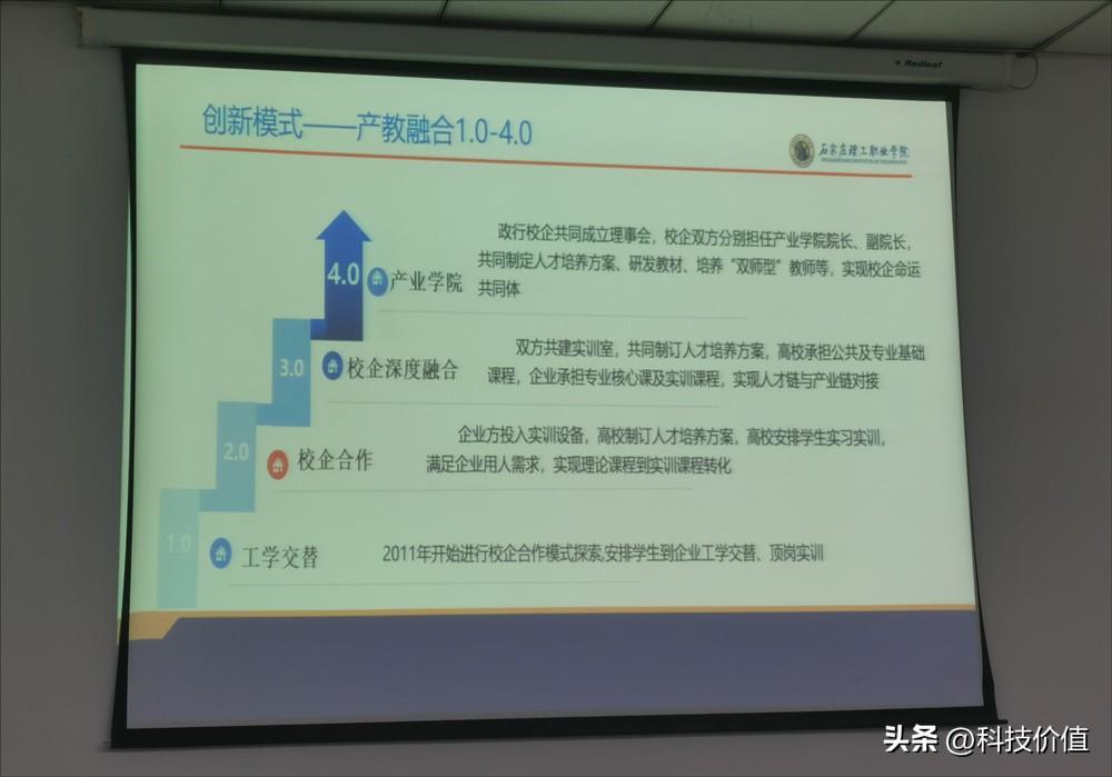 从2011年开始探索产教融合模式以来,石家庄理工职业学院已经从1.0推进至4.0的版本,而在产教融合的探索中,已经走出了从“工学交替”到“产业学院”的模式,共同定制人才培养方案、研发教材、培养“双师型”教师等,实现校企命运共同体。