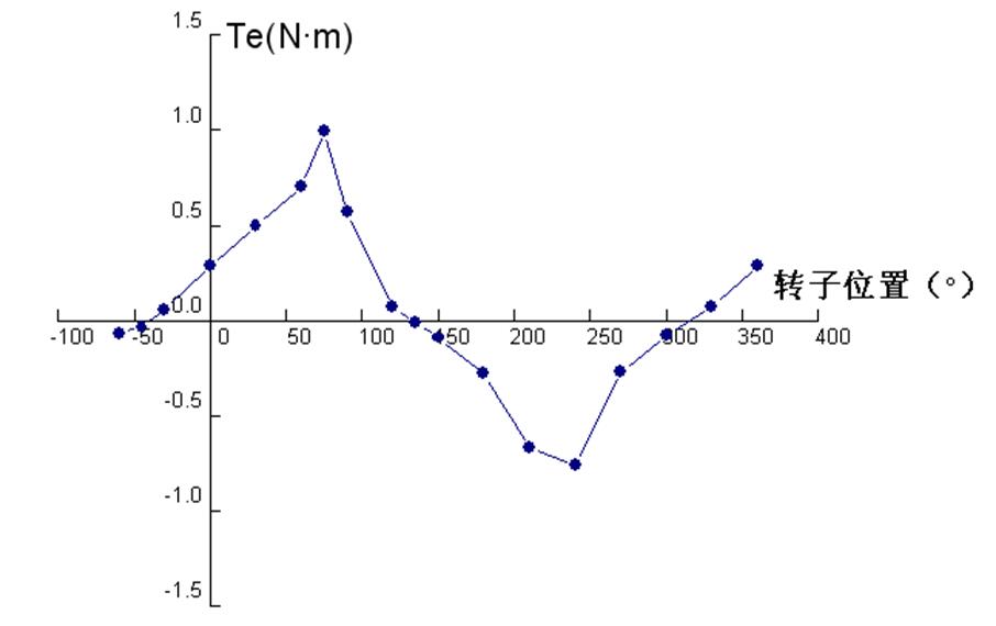 实验时,测得电机绕组阻值Rs为1.5Ω,系统选择12V直流电源供电,符合步进电机的要求。图7为步进电机运行时A相的电压波形图。图8为步进电机的静态矩角特性曲线图。