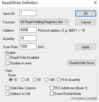 (2)读取寄存器起始地址为4099,读取长度为10,具体配置如下图所示: