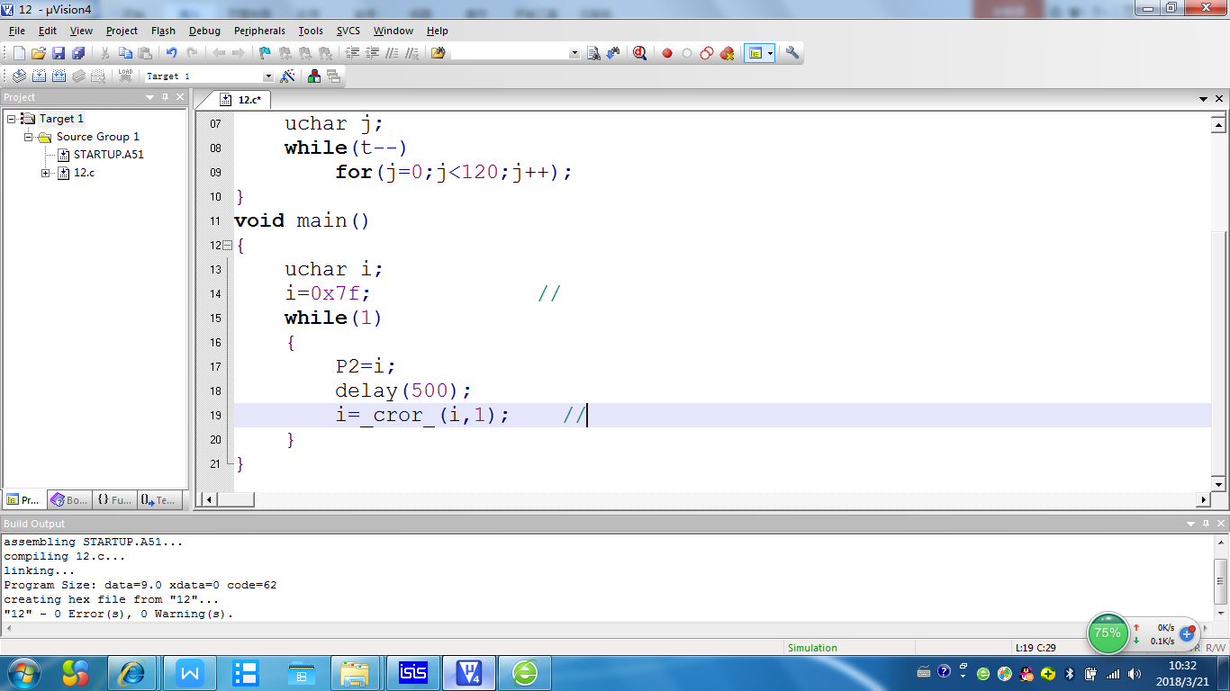 在51头文件reg51.h中没有循环移位函数的定义,而在intrins.h中有说明,所以需要调用intrins.h头文件。