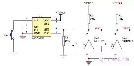 复位电路的基本功能是:系统上电时提供复位信号,直至系统电源稳定后,撤销复位信号。为可靠起见,电源稳定后还要经一定的延时才撤销复位信号,以防电源开