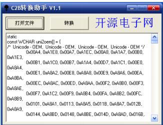 这两个数组很大,这里我们利用 ALIENTEK 提供的一个 C 语言数组转 BIN(二进制)的软件: