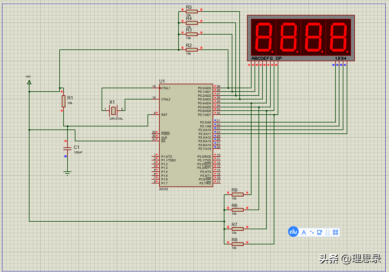 单片机 在 proteus 上 仿真 时四位数码管显示时不停闪烁移动,这是为什么?隔时间没问题,那请不要纠结此事,...显然从你的图上看,你用的是动态显示,动态显示是每位的显示时间在1-2ms,如果你的时间大于此值就会出现闪烁。如果你的显示...