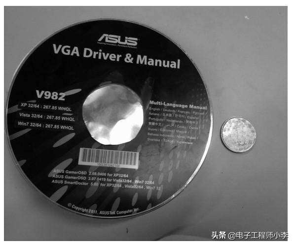 图15.2 光盘中间的圆孔用来放置温度传感器,上面用金属片导热材料固定,并涂上硅脂,增加导热效果,因为大多数杯子底部是凹进去的,也可以用硬币这种有一定厚度的材料导热。