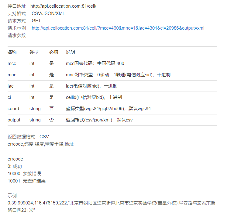 基站查询接口可查询全国移动联通电信的2G/3G/4G基站位置信息,收录数据超过两万条。下面是提供查询的API接口: