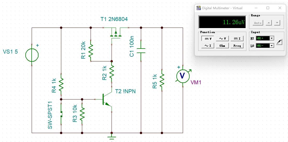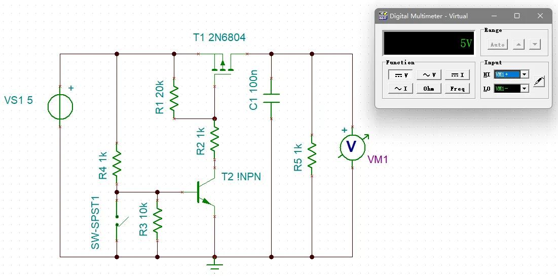 通过三极管控制MOS管电源输出,通过按下按键使三极管基极电压为零,进而使MOS管关断,切断后级电源。通过仿真可以发现功能可实现。