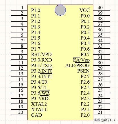 单片机STC89C51有多种封装,常用DIP封装。要使单片机工作,就要将单片机的第20个引脚接地,第40个引脚接电源,形成闭合的回路。需要注意的是,在插入单片机的过程中,将单片机的凹槽扣对准再插,不然插反了,会烧坏单片机。正确插法是20脚对应20脚,40脚对应40脚;如果插反了就是20脚对应40脚,40脚对应20脚,也就是负极接入了正极,正极接入了负极,会烧坏单片机,所以插入单片机的时候,看准单片机凹槽口再插。