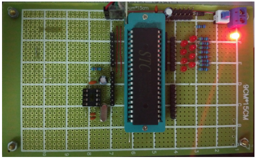 至此,将单灯点亮程序下载到单片机中,单片机最小系统通电运行,LED灯点亮,表示最小系统运行正常。