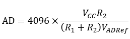 如果上拉的电源ADC的参考电源共用一个电源,可以得到和上位电源无关的一个公式: