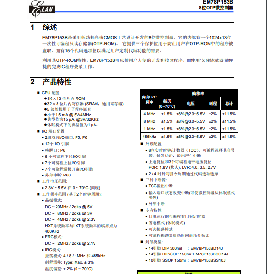 3、义隆EM78Pxxx系列单片机,如EM78P153,EM78P150SO8J ,都是OTP系列单片机