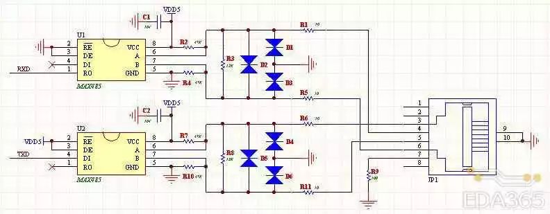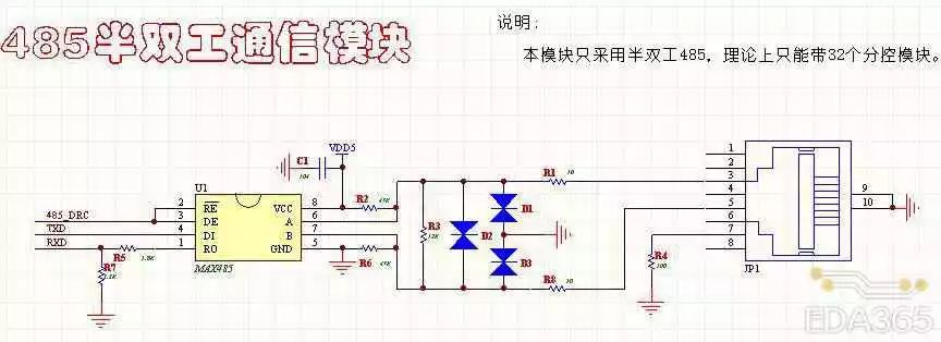 9、全双工RS485电路(带保护功能)带有保护功能,全双工4线通信模式,适合远距离通信用。