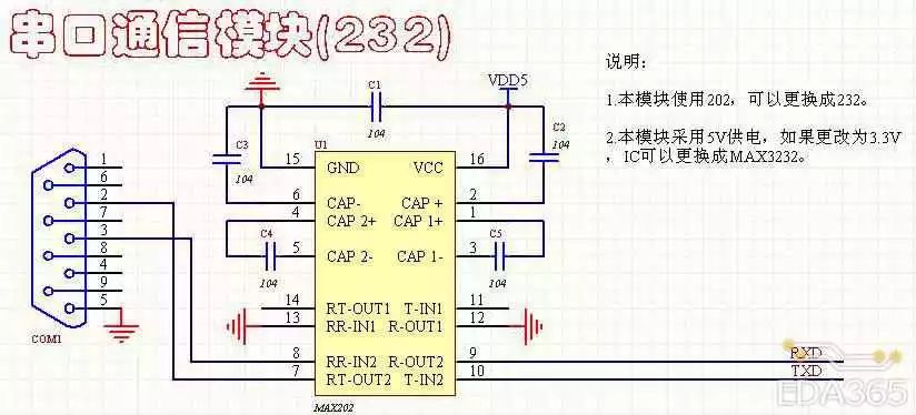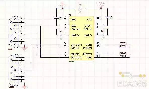 1、双路232通信电路3线连接方式,对应的是母头,工作电压5V,可以使用MAX202或MAX232。