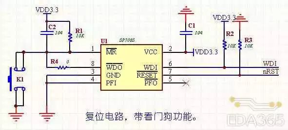 带看门狗和手动复位,价格便宜(美信的贵很多),R4为调试用,调试完后焊接好R4。
