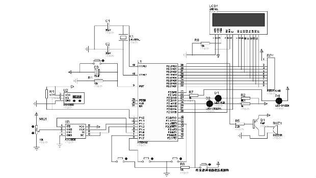 本次实验的仿真部分是在Proteus软件中进行的,相应的软件程序是在Keil C51中完成。在一般由单片机控图512864LCD液晶显示屏电路连接图制的系统中,主程序中某一部分是被系统反复执行的 。当然本系统也不例外,当单片机上电后,系统开始运行,从main函数中开始执行。在本系统的主函数中,主要完成一些外设的初始化,并根据用户对于按键的操作来控制外部信息的接收。本系统主要实现的功能有监控室内温度、检测室内烟雾以及可燃气、防盗等,并且通过GSM模块发送报警信息到远程终端。对于软件程序的编写,可以通过按键对单片机设计最小初始的最高温度和最低温度、额定的烟雾值以及红外感应等各方面的数值来达到设计的目的。下面是主程序的部分代码: