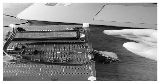 验证,该功能能正常工作。测试最后一个功能:防盗。当人体感应传感器检测到有人非法进入时,显示屏上入侵状态显示有,反之,则显示无。