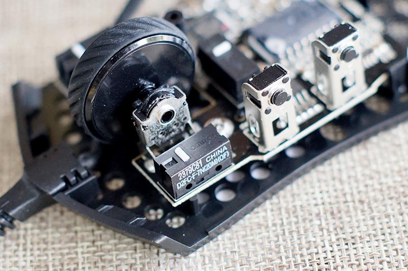 而滑轮的微动是华诺绿点,DPI的微动来自于凯华的白点,侧键则是不知是什么品牌的按钮式微动。