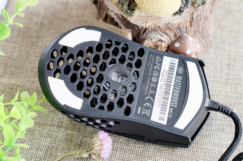 酷冷至尊M710洞洞鼠标有两种配色,分别是黑色和白色,个人感觉还是黑色比较耐脏一点。这款鼠标的主要特点就是特别的轻,重量仅有53g,这个重量在游戏鼠标里属于极端轻便的类型,为了降低重量,这鼠标选择了一种比较极端是设计风格。