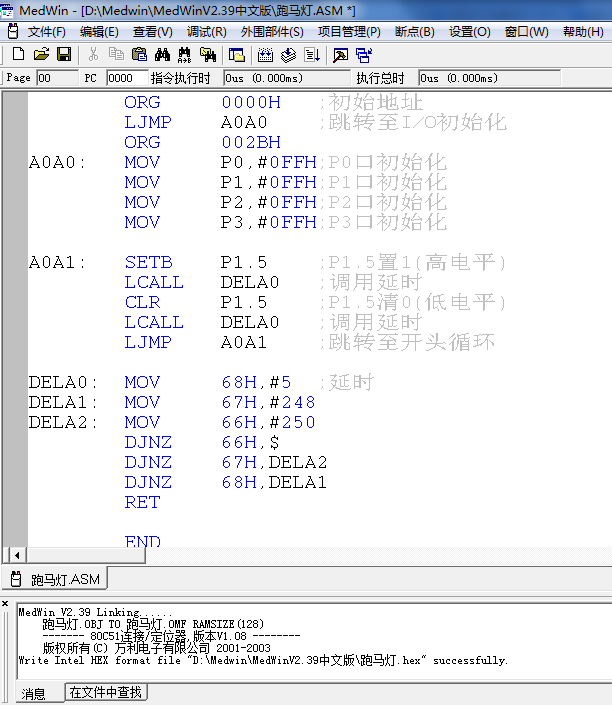 A0A1:SETB P1.5 ;P1.5置1(高电平)